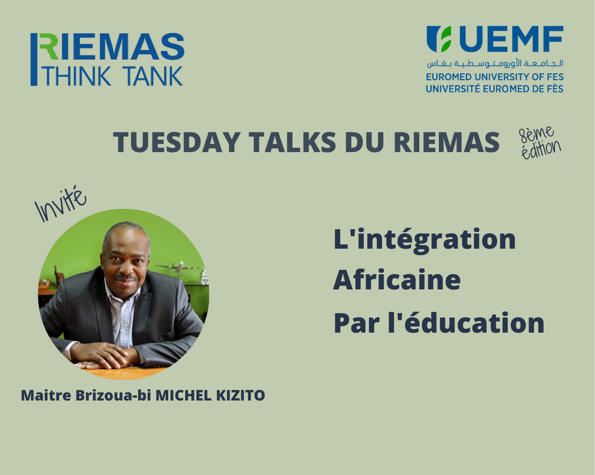 Le RIEMAS (Research Institute for European, Mediterranean and African Studies)a eu le plaisir d’accueillir, Maître Michel Kizito BRIZOUA-BI lors de son événement phare les RIEMAS Tuesday Talks autour du thème l’Intégration Africaine par
