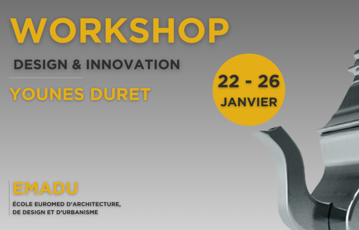 L’École Euromed d’Architecture, de Design et d’Urbanisme organise au nom de son département de Design un workshop qui s’étale sur la semaine du 22, jusqu’au 26 janvier 2024. Ce workshop est encadré par le designer maro