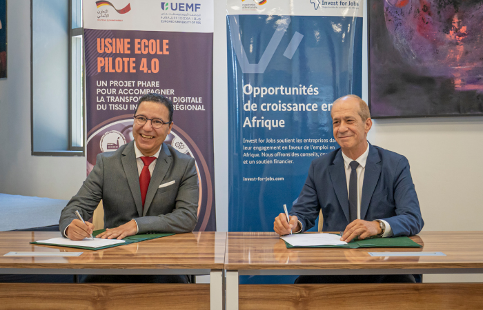 Signature de la convention de financement du projet ‘’Usine Ecole Pilote 4.0’’ cofinancé par la filiale de la KFW, la Facilité Investissements pour l’emploi (IFE). Le projet objet de cette subvention qui est porté par l’Université EuroMed
