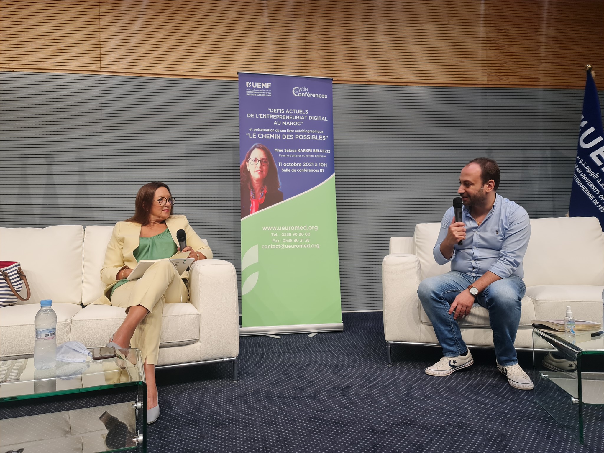 Mme. Saloua Karkri Belkziz, Femme d'affaires et Femme politique s'est rendu aujourd'hui à l'UEMF pour animer une conférence sous le thème "Défis actuels de l'entreprenariat digital au Maroc".